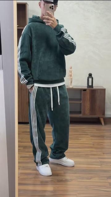 طقم سبور رجالي قطعتين – هودي وسروال بخطوط جانبية