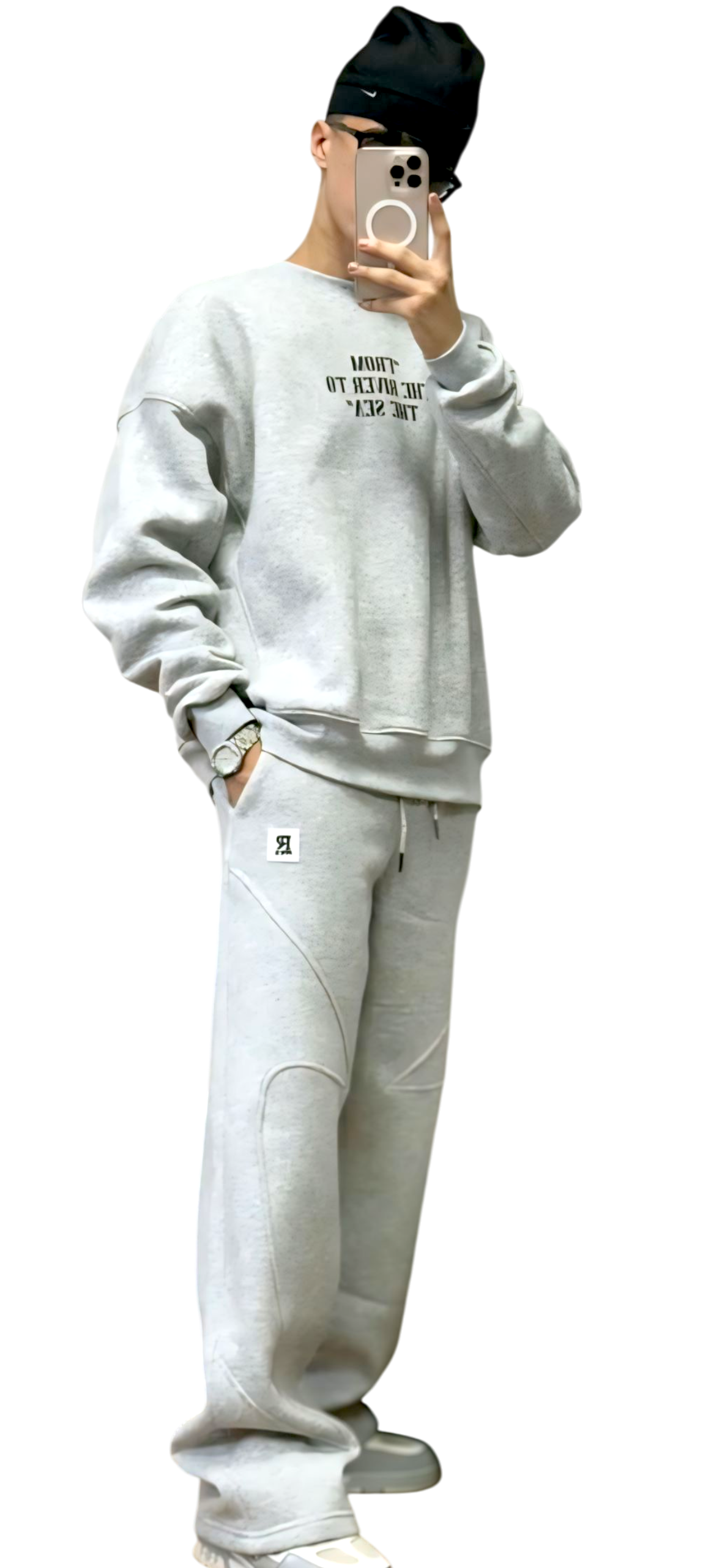 هاد السويت جا Oversize بستايل شبابي وكاجوال، كيعكس رسالة قوية ومليئة بالمعنى: